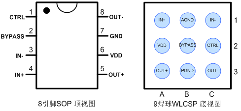 • 無(wú)鉛無(wú)鹵封裝,SOP8、SOP8-PP和WLCSP-9