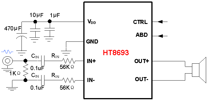 HT8693可實(shí)現AB類(lèi)和D類(lèi)的自由切換功能,在受到D類(lèi)功放EMI干擾困擾時(shí),可隨時(shí)切換至AB類(lèi)音頻功放模式。