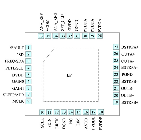 • 無(wú)鉛無(wú)鹵封裝,QFN36-P